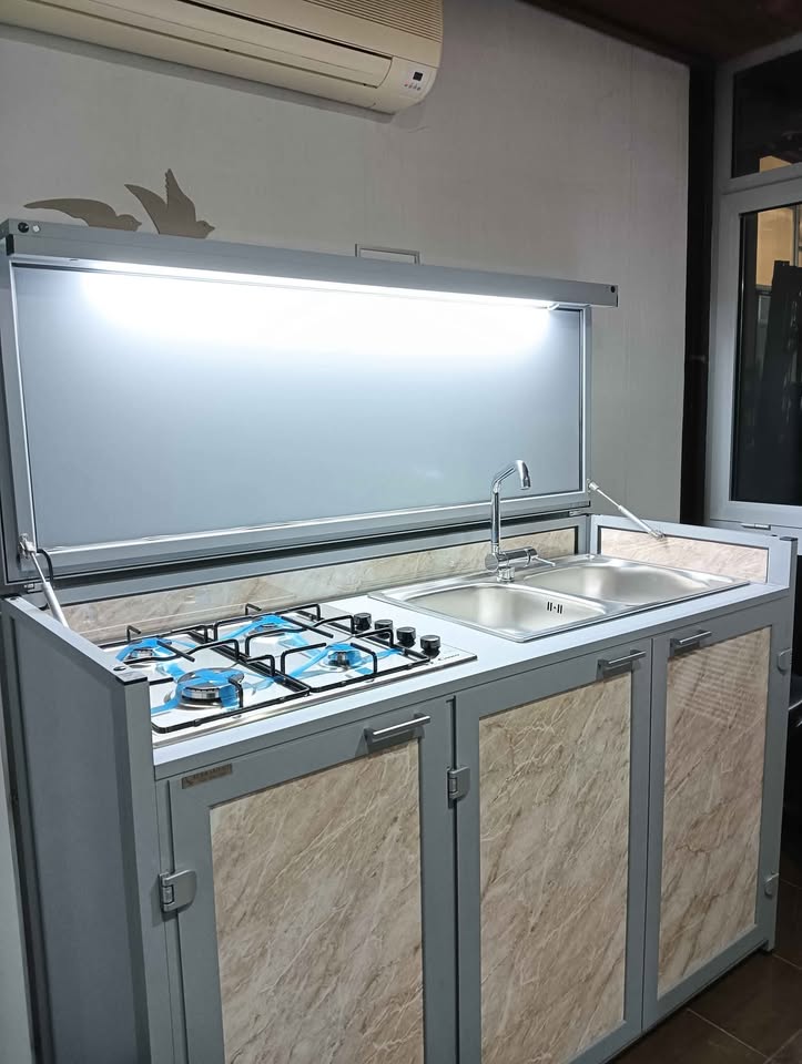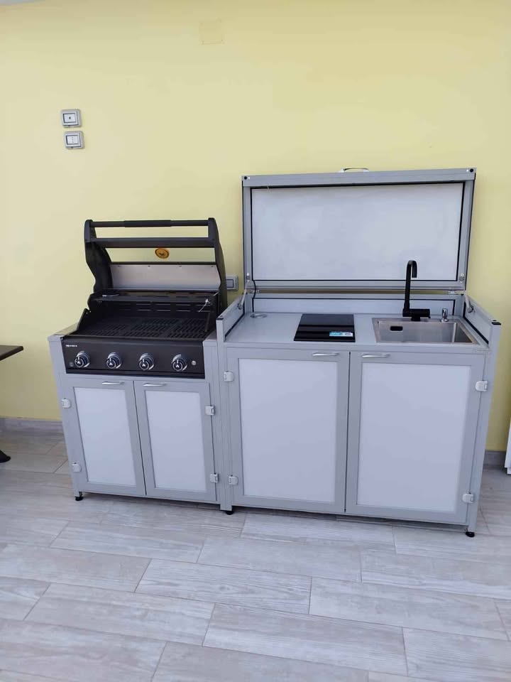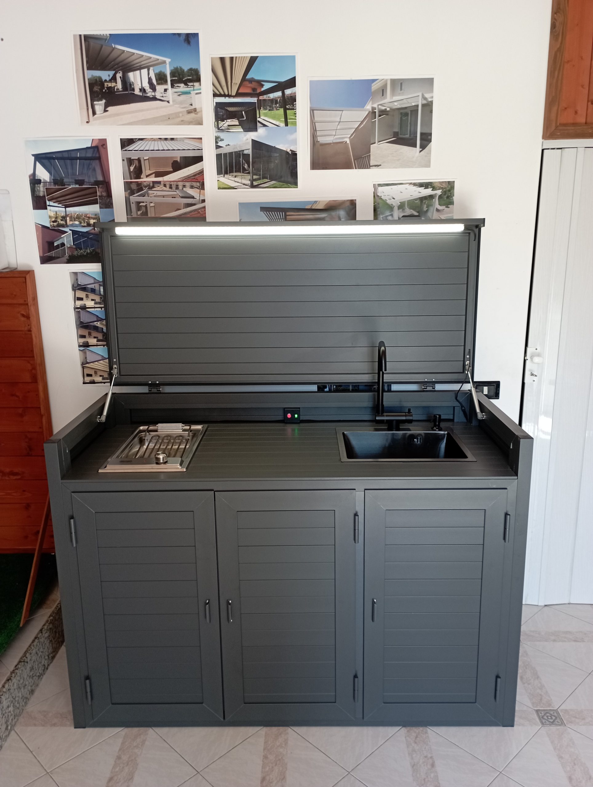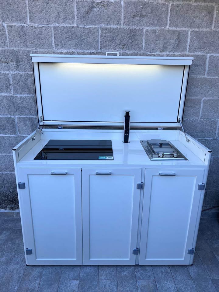Le nostre cucine sono realizzati con materiali di alta qualità, leggeri e resistenti a tutti gli agenti atmosferici, e facilmente componibili per essere impiegati in diverse locazioni.